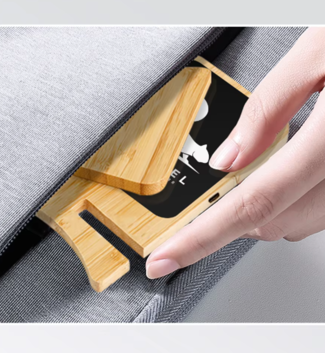 - Inside Packaging - Wireless Bamboo Charger + Charging Cable + User Manual